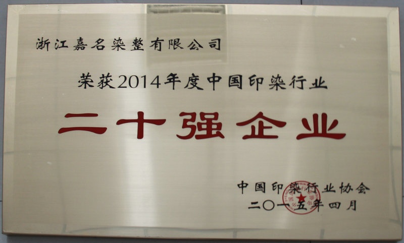 浙江嘉名染整有限公司獲“2014年度中國印染行業企業20強” 2015-04-15 00:00:00 浙江嘉名染整有限公司 瀏覽次數 1749 4月14日下午,在中國印染行業協會五屆三次理事擴大會議暨五屆四次常務會議上,浙江嘉名染整有限公司榮獲“2014年度中國印染行業企業20強”。 上一條中國印染行業協會會長陳志華蒞臨嘉名公司走訪調研 下一條公司重獲“桐鄉市十大突出貢獻工業企業”殊榮