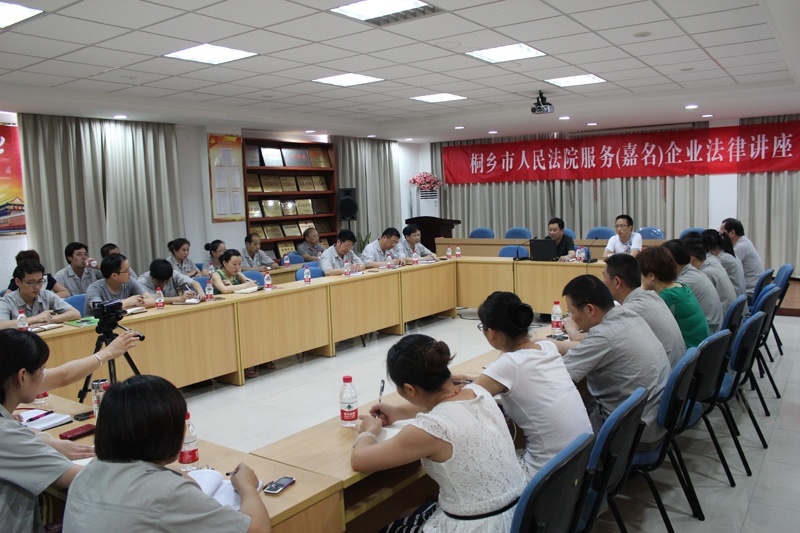 7月27日(周六)下午,應(yīng)公司邀請(qǐng),桐鄉(xiāng)市人民法院走進(jìn)嘉名公司為企業(yè)提供法律服務(wù),在公司行政樓三樓多功能廳,舉辦了一次法律專題講座。公司領(lǐng)導(dǎo)、營(yíng)銷中心各部門全體人員,財(cái)務(wù)管理部、信用管理部、品質(zhì)管理部、采購物控部、經(jīng)編事業(yè)部的營(yíng)銷、生產(chǎn)、財(cái)務(wù)負(fù)責(zé)人等30余人參加了會(huì)議。