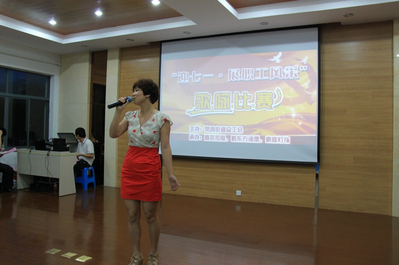 6月26日晚,在嘉名公司員工公寓區多功能廳內歡聲笑語,歌聲嘹亮,由鳳鳴街道總工會主辦、“嘉名控股”、“新東方油墨”、“豪庭燈飾”協辦的“迎七一,展職工風采”歌詠比賽在熱烈、歡快的氛圍中隆重舉行。