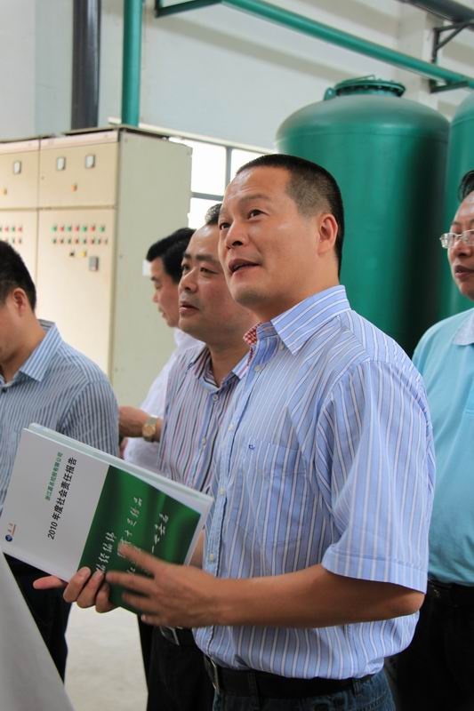 8月3日,中共桐鄉(xiāng)市委書(shū)記盧躍東,市委常委、統(tǒng)戰(zhàn)部長(zhǎng)沈濟(jì)賢,市委常委、副市長(zhǎng)王堯祥,市人大副主任沈德興,市政府副市長(zhǎng)周民、市政協(xié)副主席潘家春及市委辦、市政府辦、市發(fā)改局、市環(huán)保局、水務(wù)集團(tuán)等部門領(lǐng)導(dǎo)在鳳鳴街道黨委書(shū)記葛柏金等陪同下,到嘉名公司調(diào)研節(jié)能減排工作,公司董事長(zhǎng)、總經(jīng)理莫炳榮接待并介紹情況。